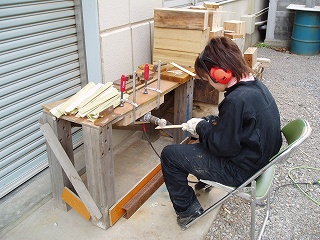 ・竹をほぼ等しい幅に、なたを使い割っていった.