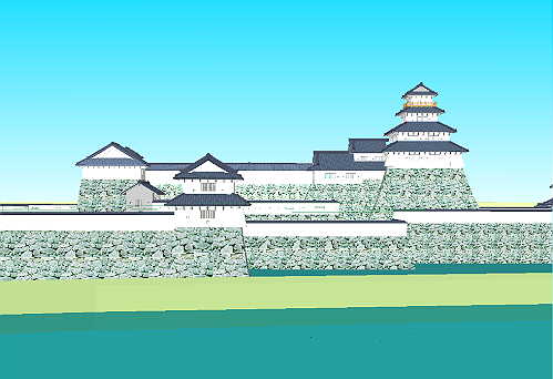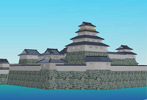 Funai Castle Restoration, Rendered by Makoto Tominaga